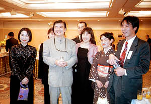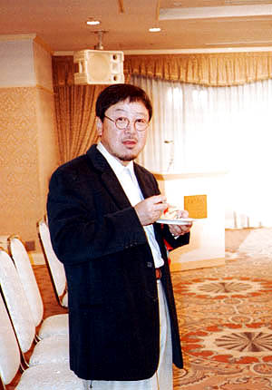 写真は、その「小南陵さんの出版を祝う会」の様子です。 写真左、腹ごしらえをする獏さん。 写真右、小南陵師匠を囲む獏さんファン。手違いで獏さんを入れた集合写真がありません。(^^: